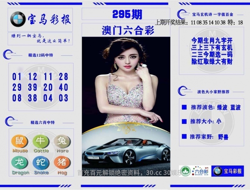 294期:七肖[猴狗羊牛马鸡鼠]开:鼠18准